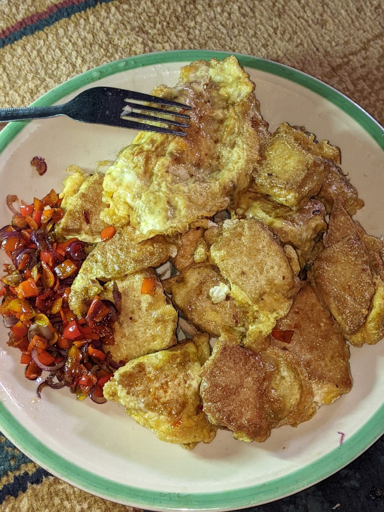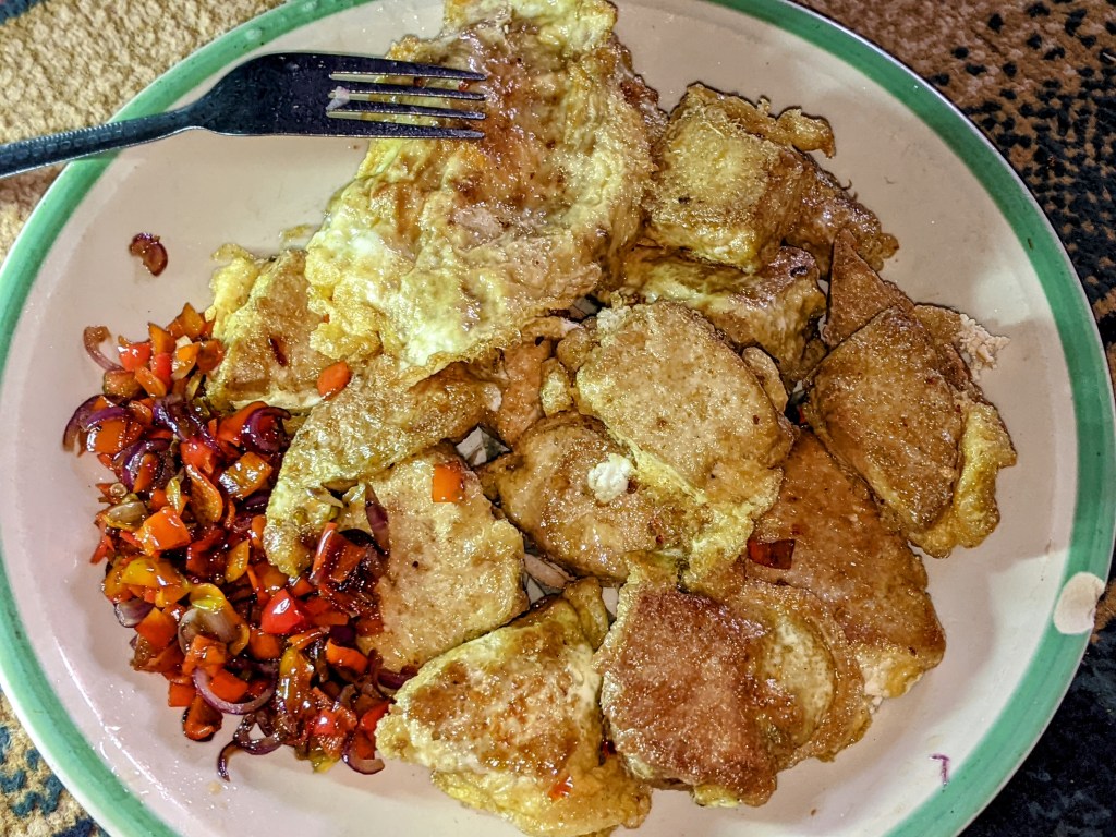 Fry and coat it with egg it’s ready to eat .u can eat it with pounded dried pepper and seasoning or u can make a pepper sauce like I did . U can even eat it like that .